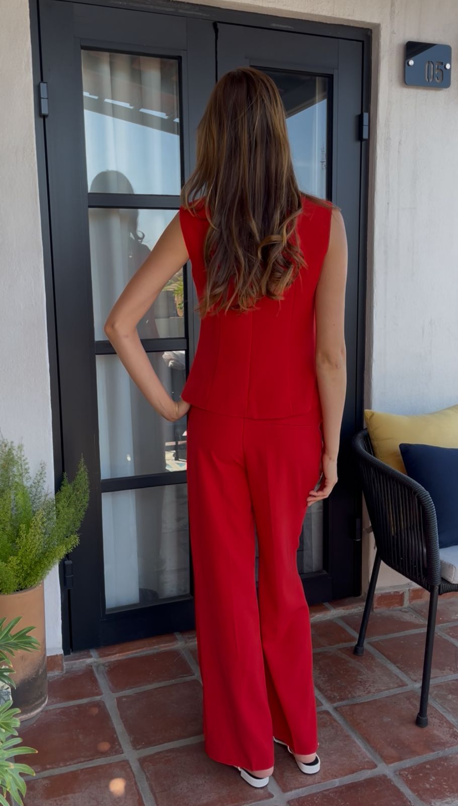 Set chaleco y pantalón rojo con botón dorado