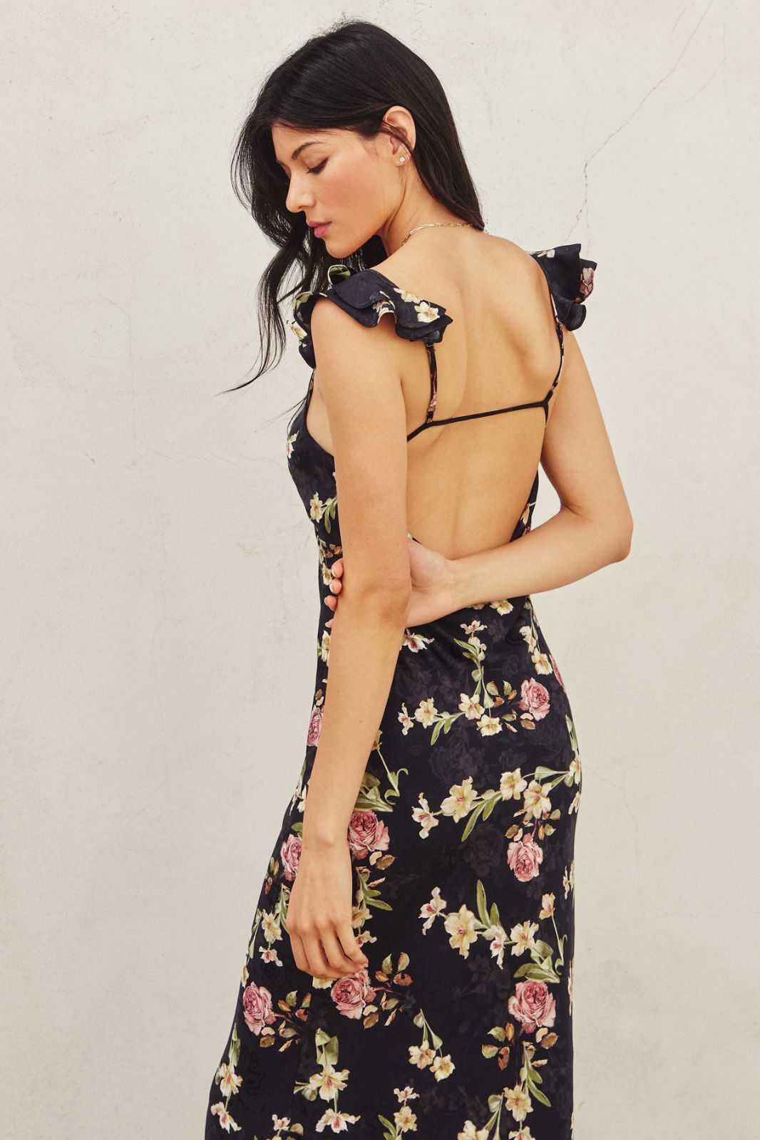 Vestido maxi tirantes negro con flores