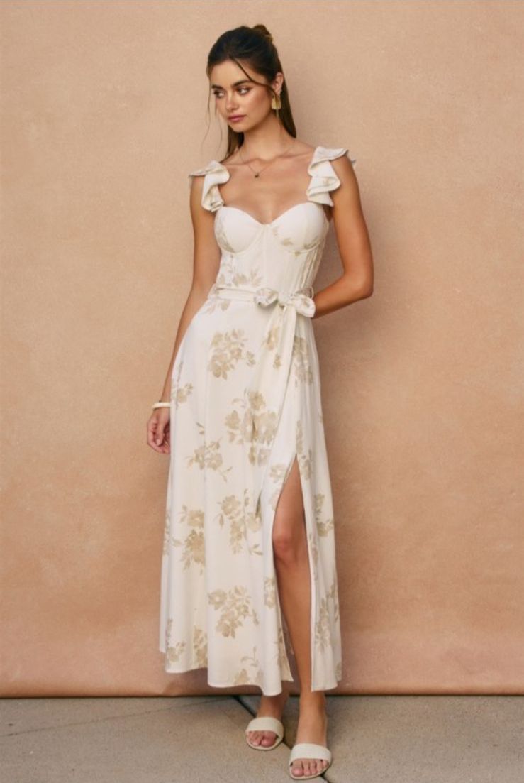 Vestido midi tirantes beige con flores cafes