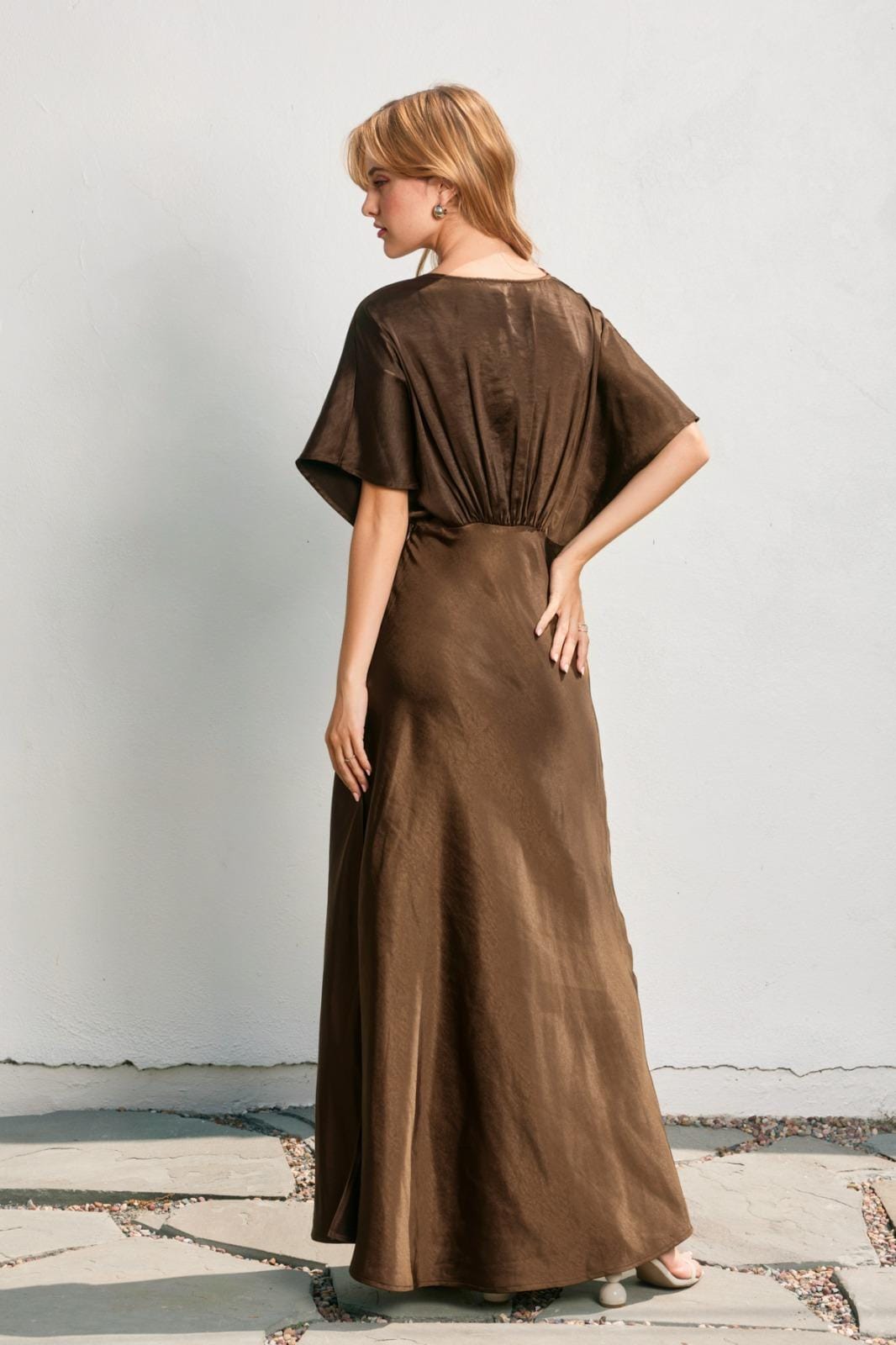 Vestido maxi mangas cortas café