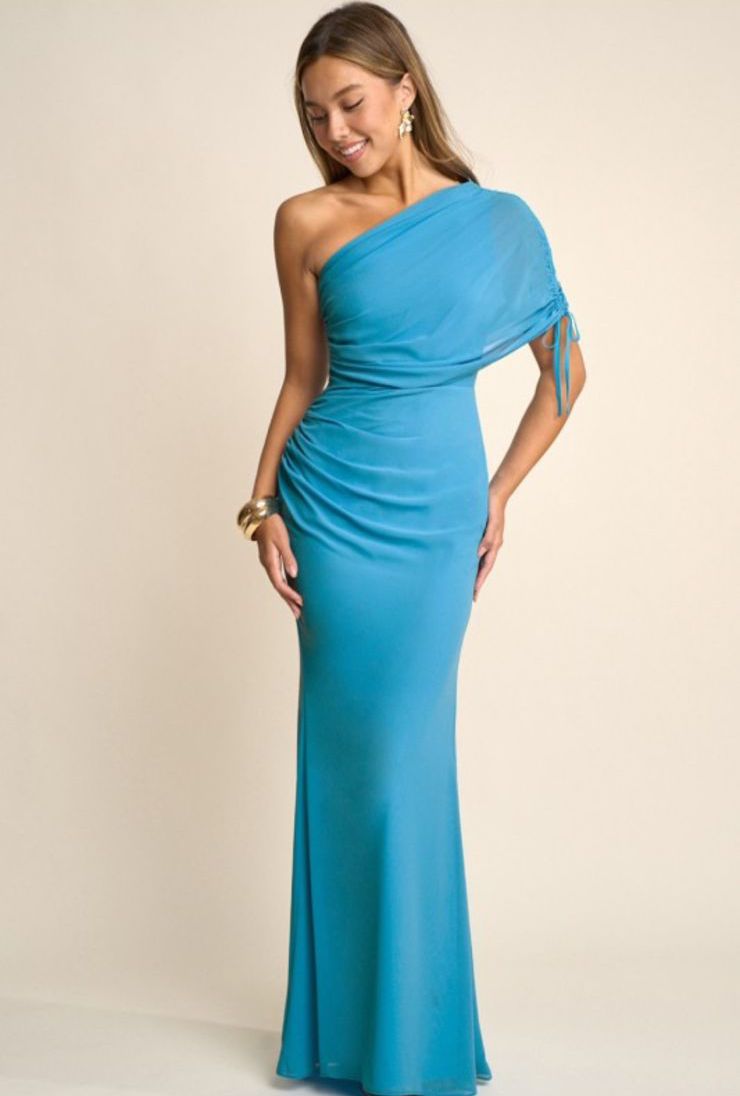 Vestido maxi corte asimétrico azul