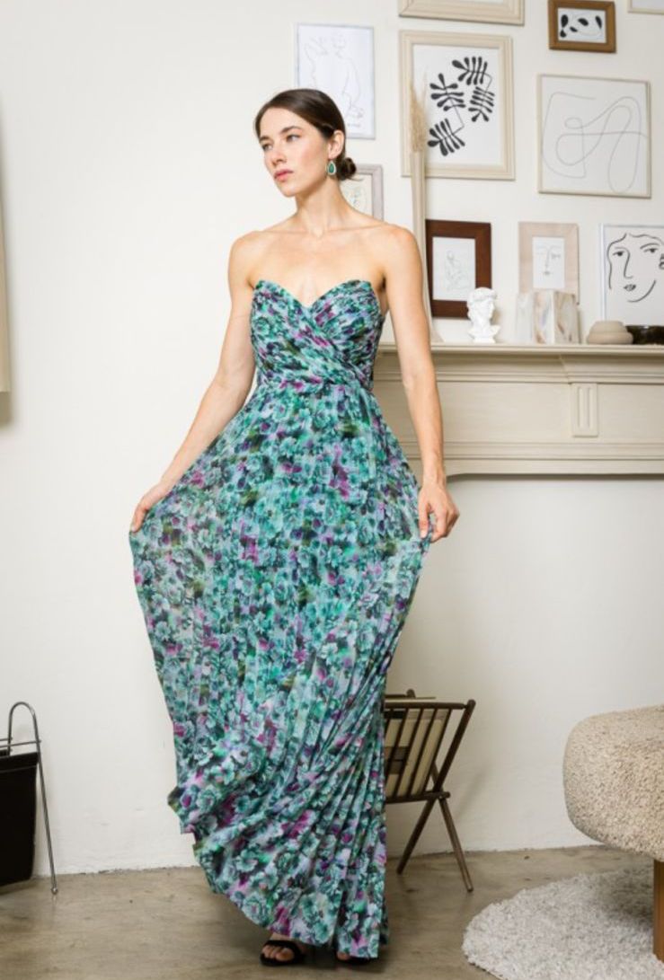 Vestido maxi verde plisado